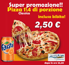 tutti i giorni dal martedi alla domenica speciale promozione!! 1\4
